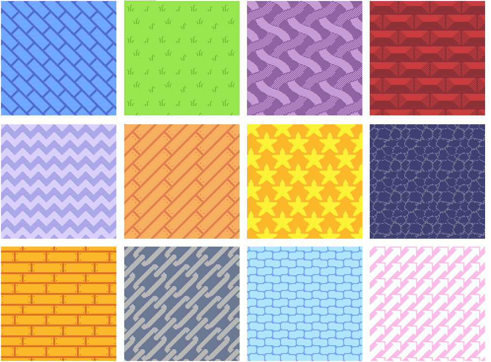 Use in pixel art and games, stylized 2D animation, as materials for 3D models, or as stylish background patterns in web design and digital illustrations.